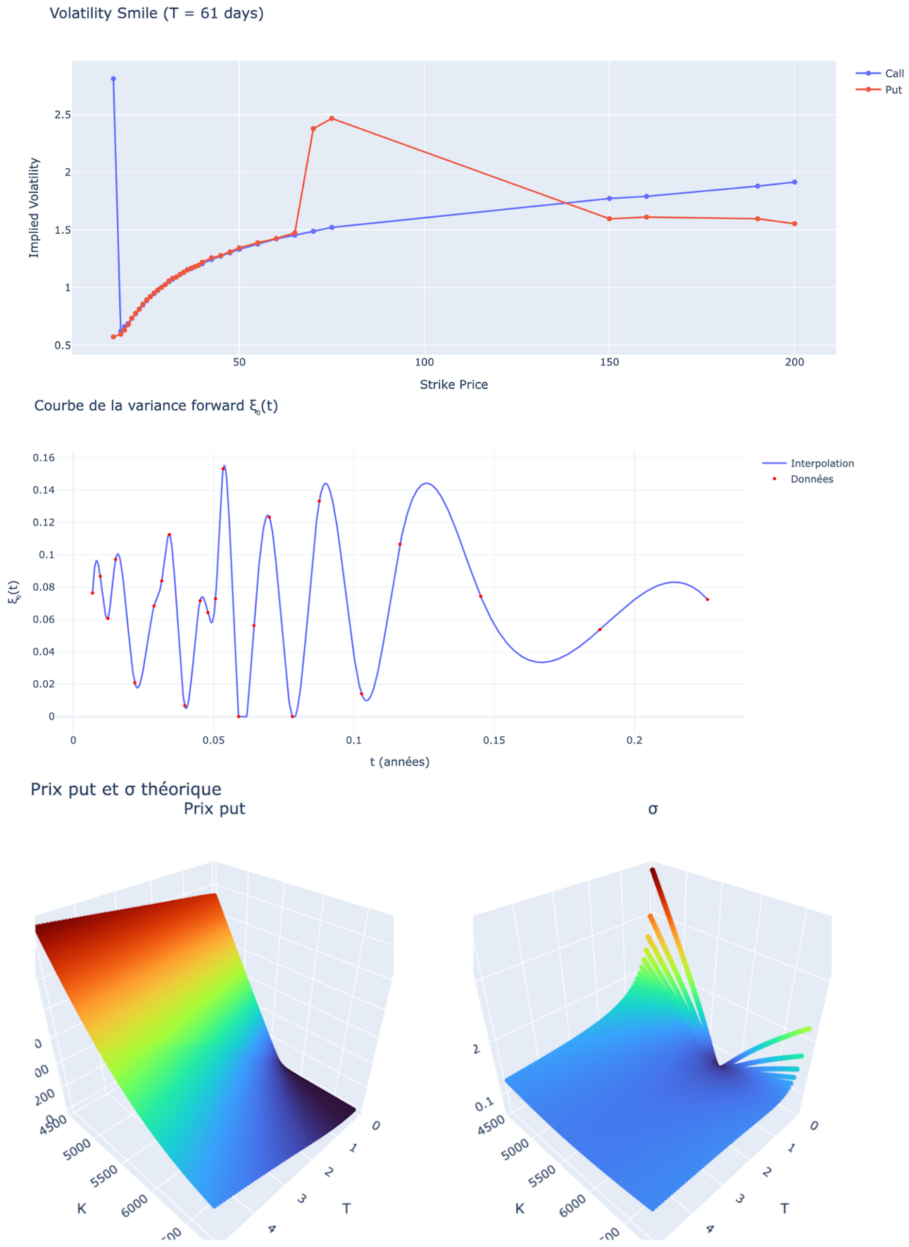 - Forward variance term structure ξ₀(t) extracted from market using Carr-Madan formula